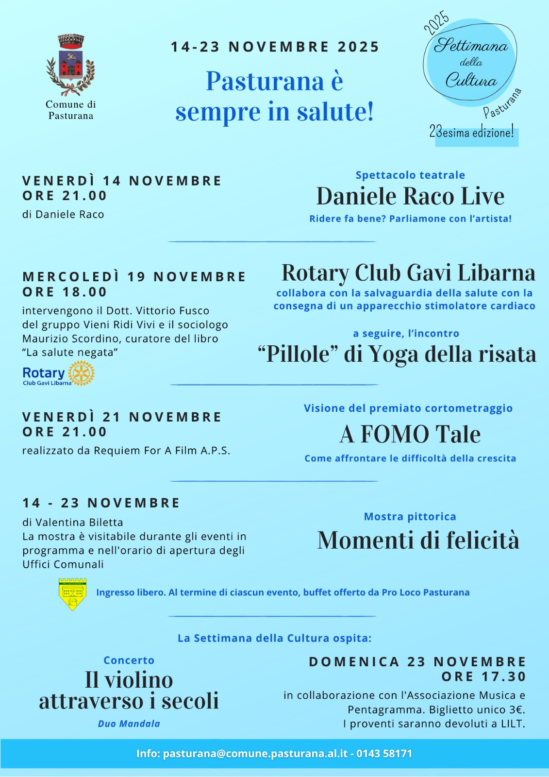 dal 14 al 23 novembre - Settimana della cultura: Pasturana è sempre in salute!